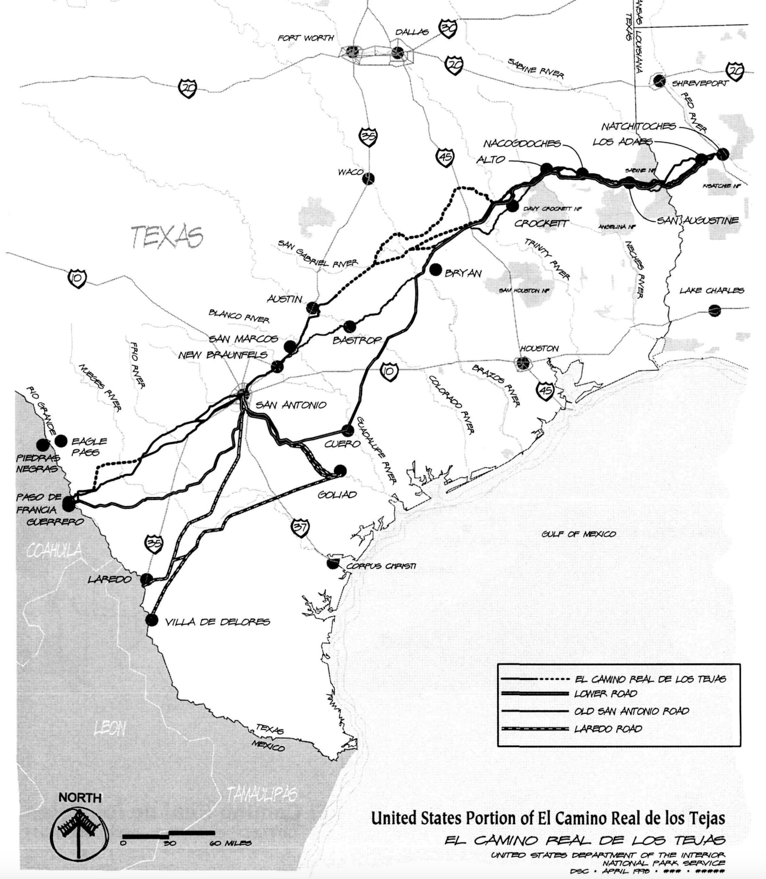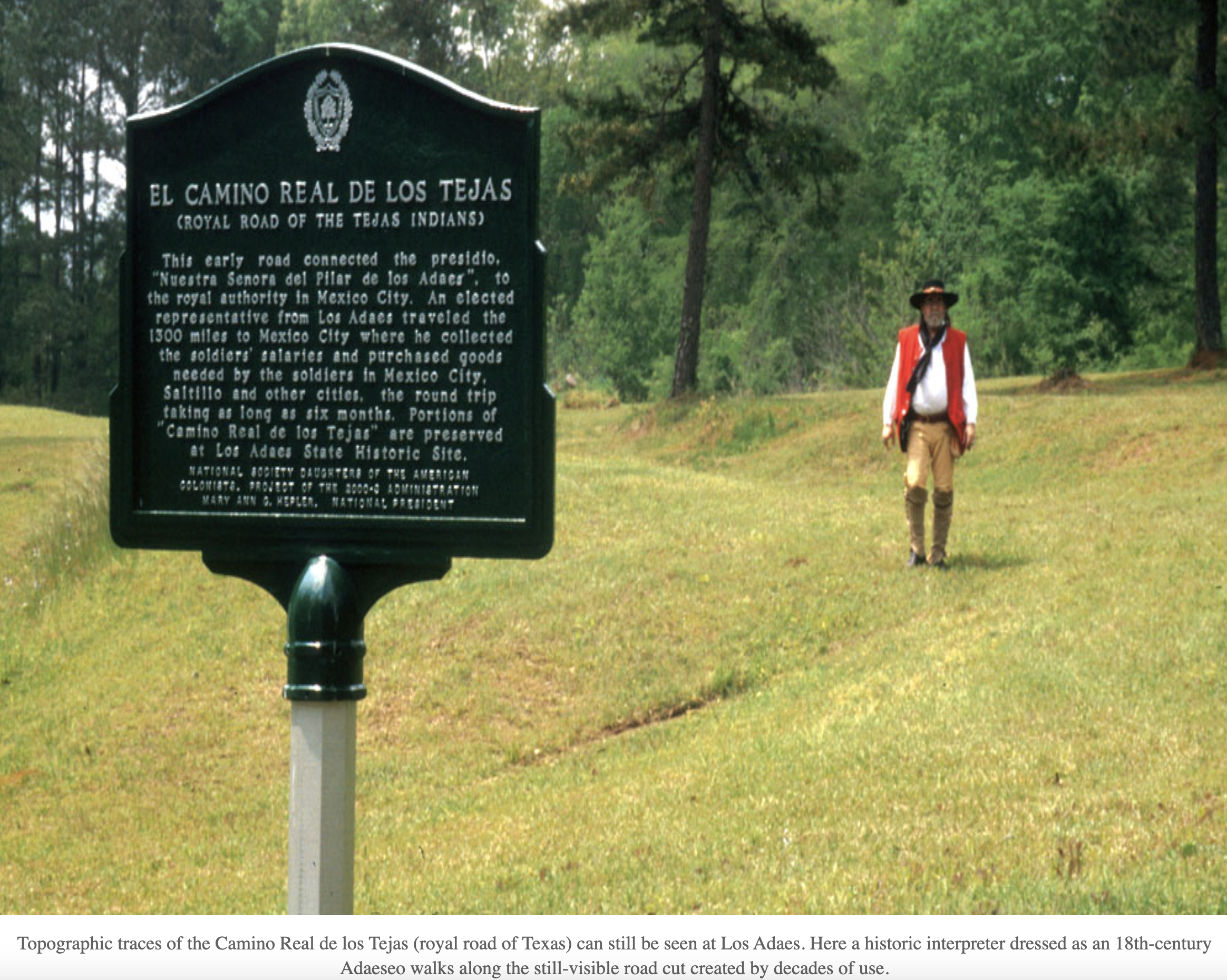 The trail between some of their villages became part of the road between Natchitoches and San Antonio, known variously as the Contraband Trail, San Antonio Trace, and El Camino Real, which passed through Los Adaes.