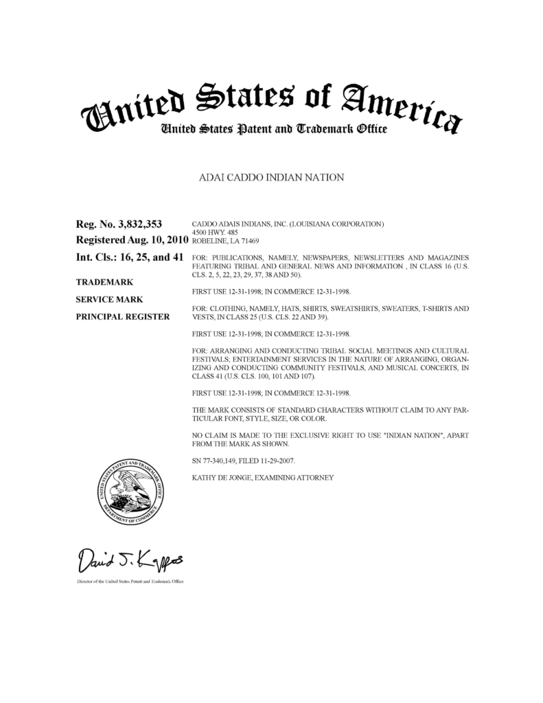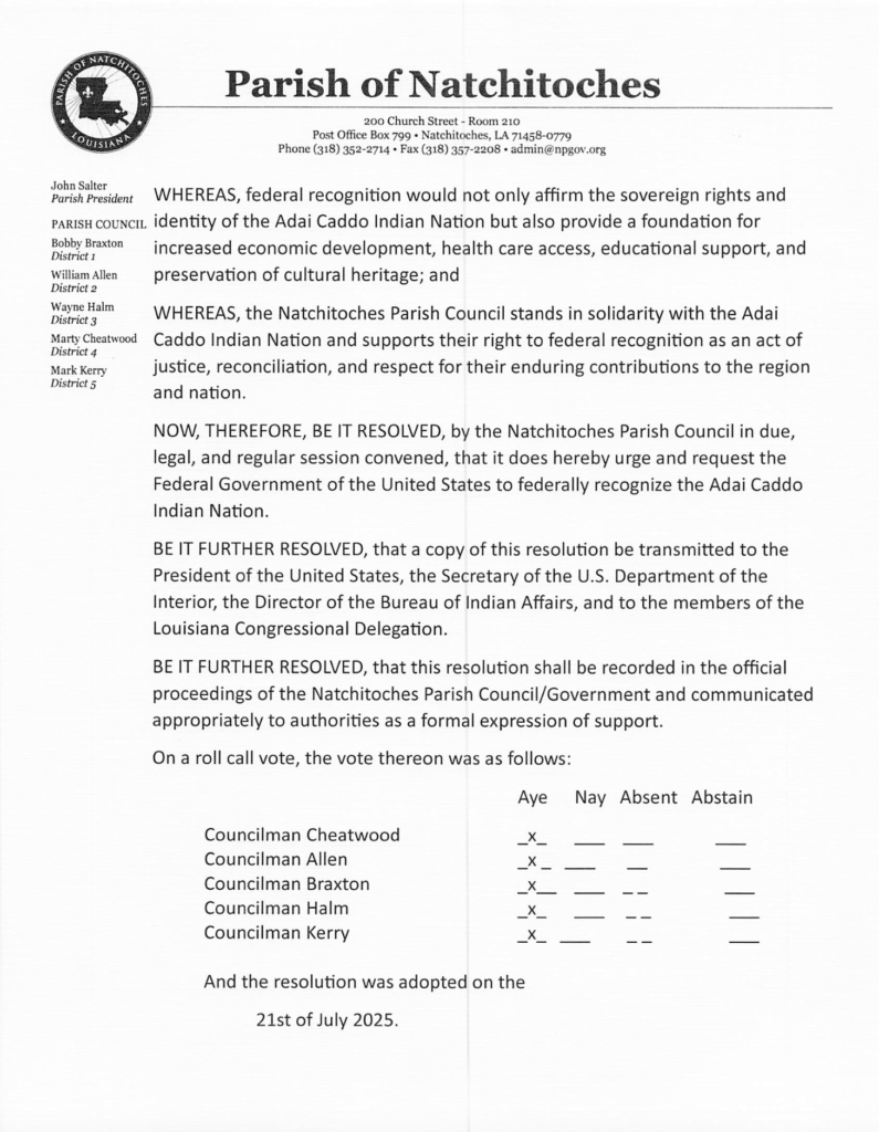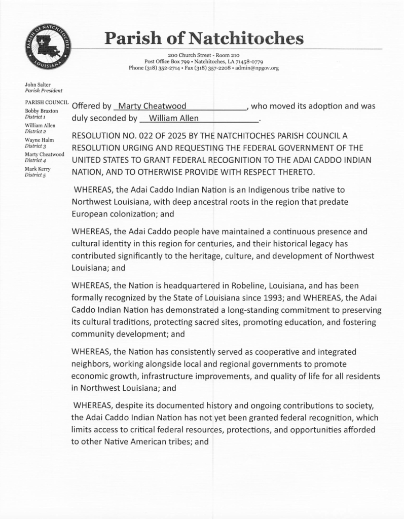 The Adai Caddo have been recognized as an Indian nation for over 300 years.